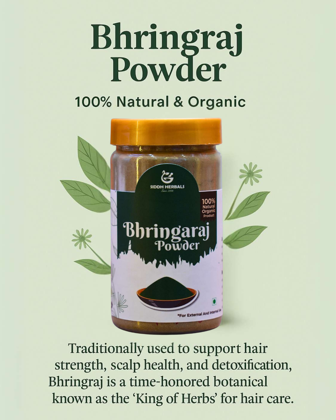 Rediscover the age old Ayurvedic secret to long, strong and naturally beautiful hair with Siddh Herbals Bhringraj Powder.