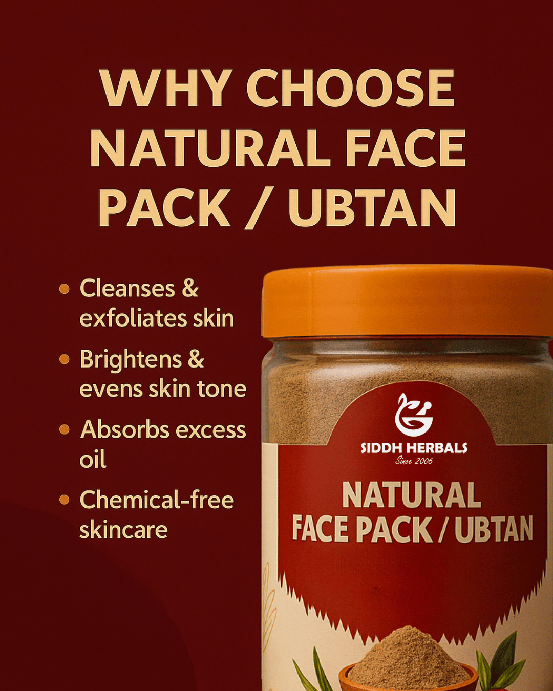 Experience the holistic power of traditional Ubtan and reveal your skin’s natural brilliance with Siddh Herbals Natural Face Pack Powder.