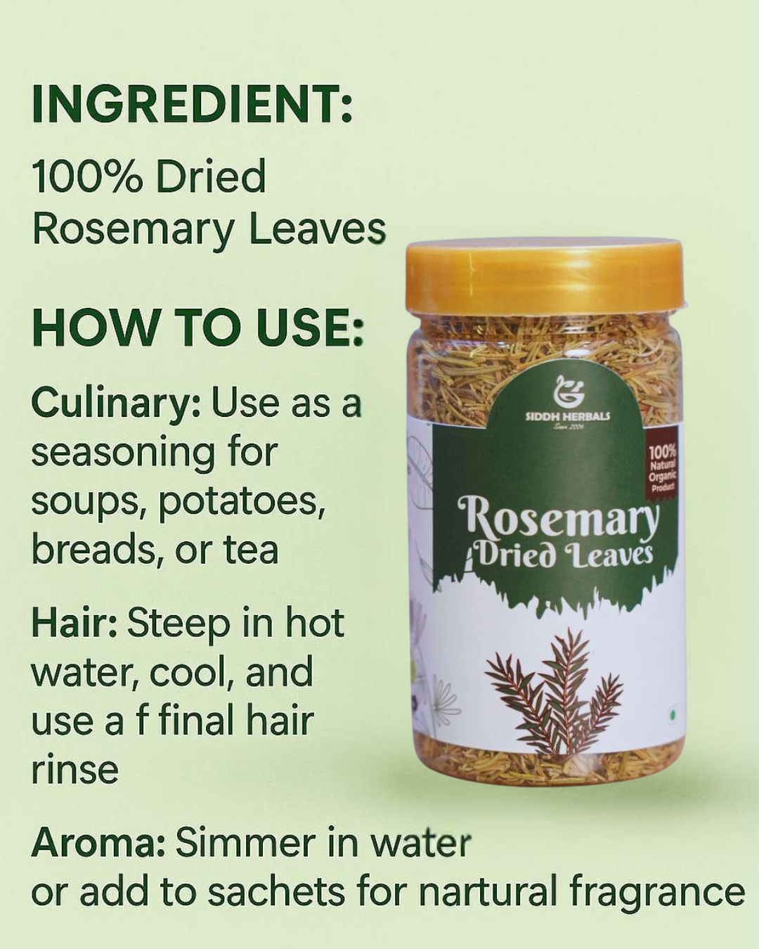 Ingredient: 100 percent Natural and Organic Rosemary Leaf Powder